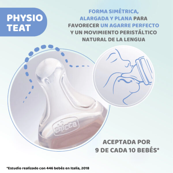 Diseño ergonómico para un agarre más cómodo. Gracias a su tetina anti cólico, el biberón reduce la ingesta de aire, haciendo que la leche fluya de manera más homogénea y continua y ayuda a prevenir el cólico y la regurgitación